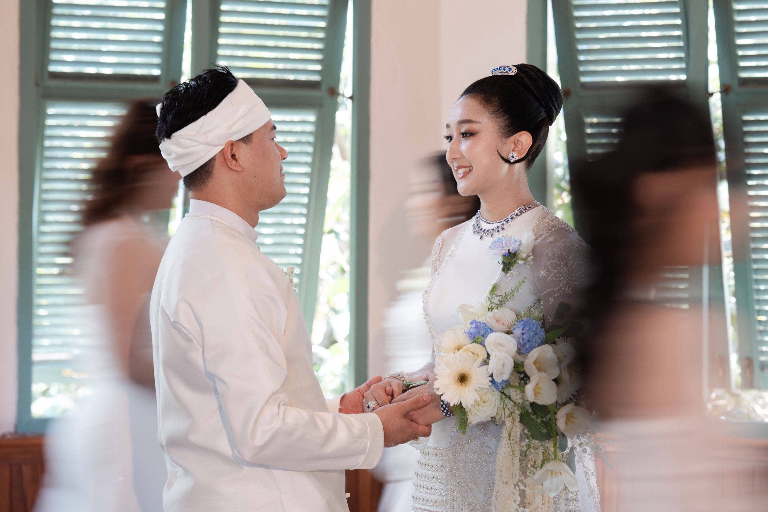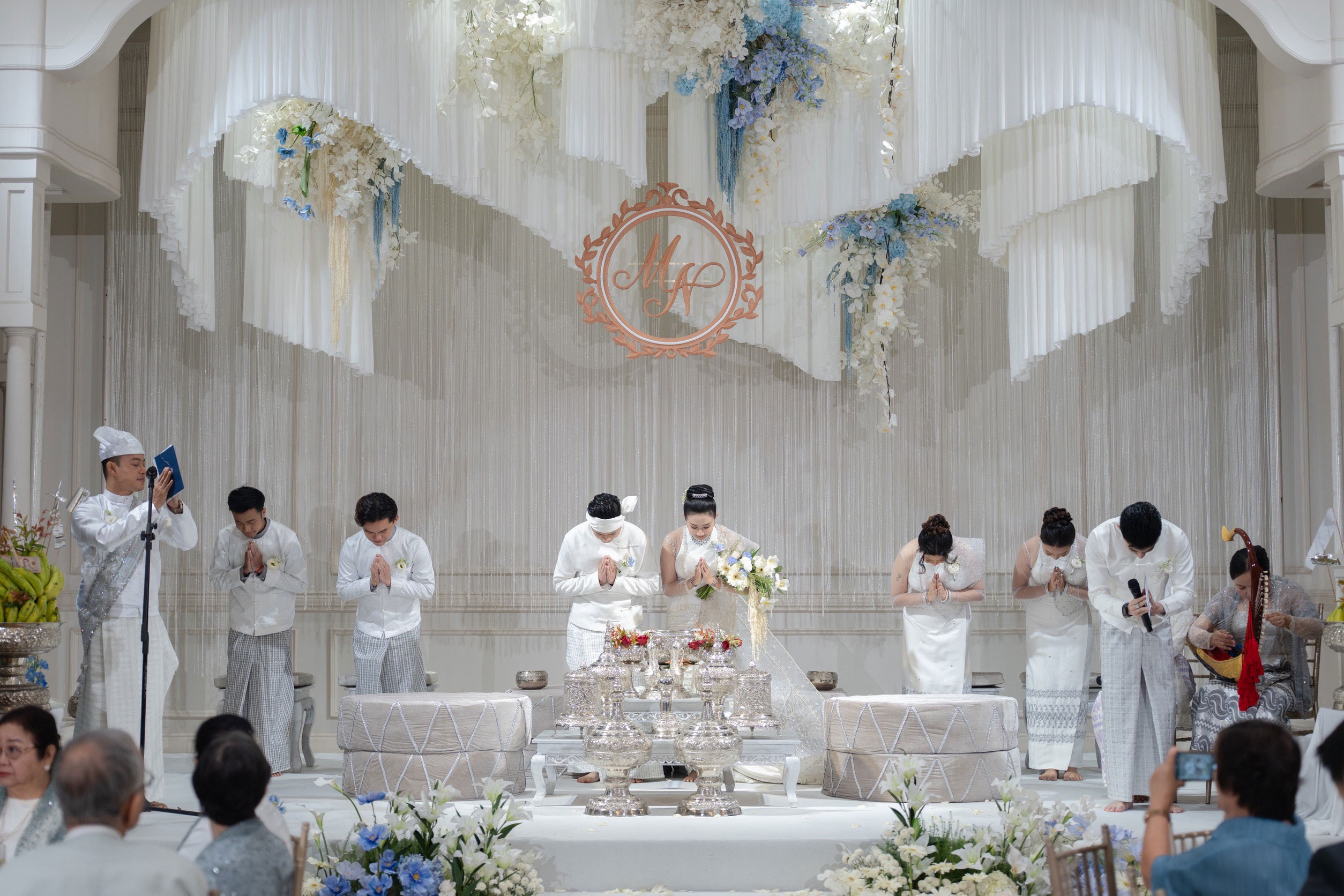 Actually, in Myanmar, there are different ways to do the traditional wedding. The one that doesn’t take very long and like mine, the proper one. It takes around 45 minutes because we have a series of ceremonies.