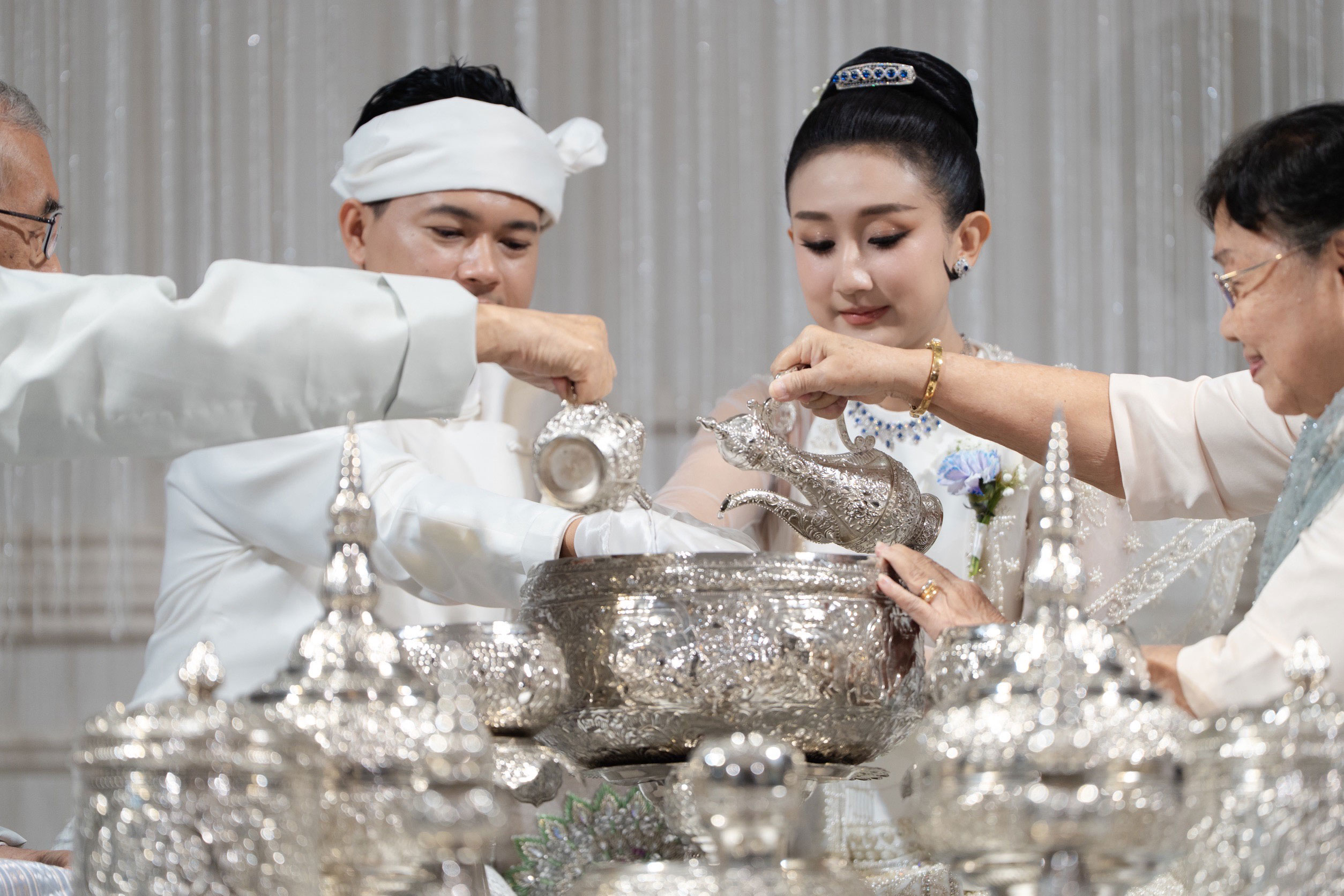 So the problem is those tools, the tools that we use for the ceremony we have in Thailand but they only have gold colour. So I have to bring everything from Myanmar. And the process of preparing the wedding was very challenging.
