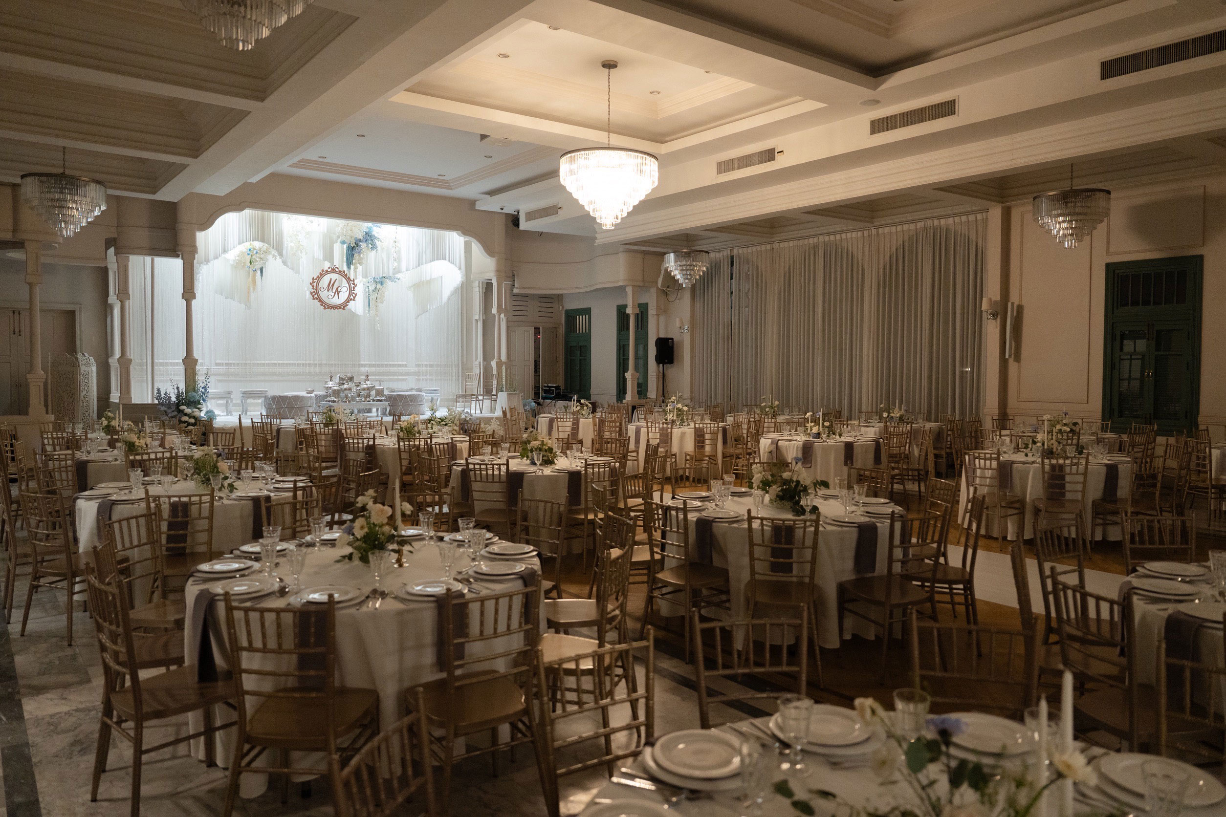 I chose a table setting for reception. Actually, I thought I’m gonna just have 100-150 guests. But in the real day, I have more than 180 people. So that’s a lot of people and it’s a bit tight inside.